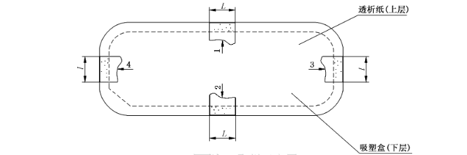 在每只滅菌包裝封口四邊各取長(zhǎng)度L 為25.4mm±0.5mm 的樣品。取樣位置見圖 D.1: